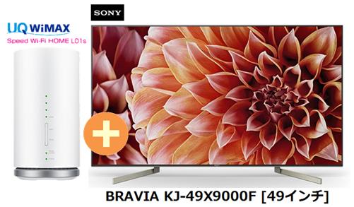 UQ WiMAX 正規代理店 3年契約UQ Flat ツープラスまとめてプラン1670SONY BRAVIA KJ-49X9000F [49インチ] + WIMAX2+ Speed Wi-Fi HOME L01s ソニー ブラビア 4K 液晶テレビ 家電 セット ワイマックス 新品【回線セット販売】