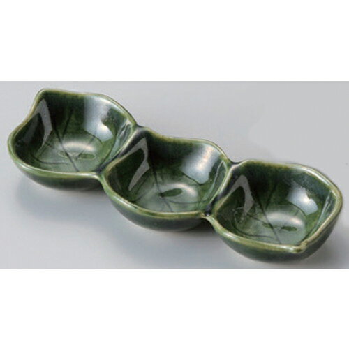 ☆ 仕切皿 ☆織部木の葉三品皿 [ 16.5 x 6.5 x 2.7cm 145g ] | 蕎麦 そば 薬味 薬味皿 小皿 うどん おすすめ 人気 食器 業務用 飲食店 カフェ うつわ 器 おしゃれ かわいい お洒落 ギフト プレゼント 引き出物 内祝い 結婚祝い 誕生日 贈り物 贈答品